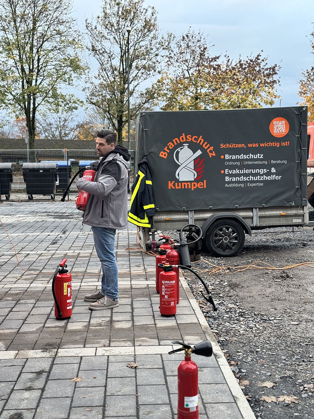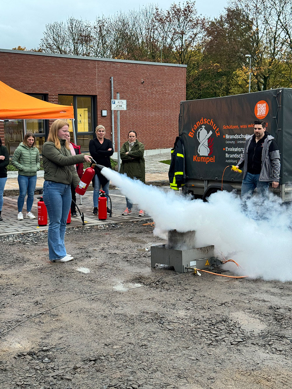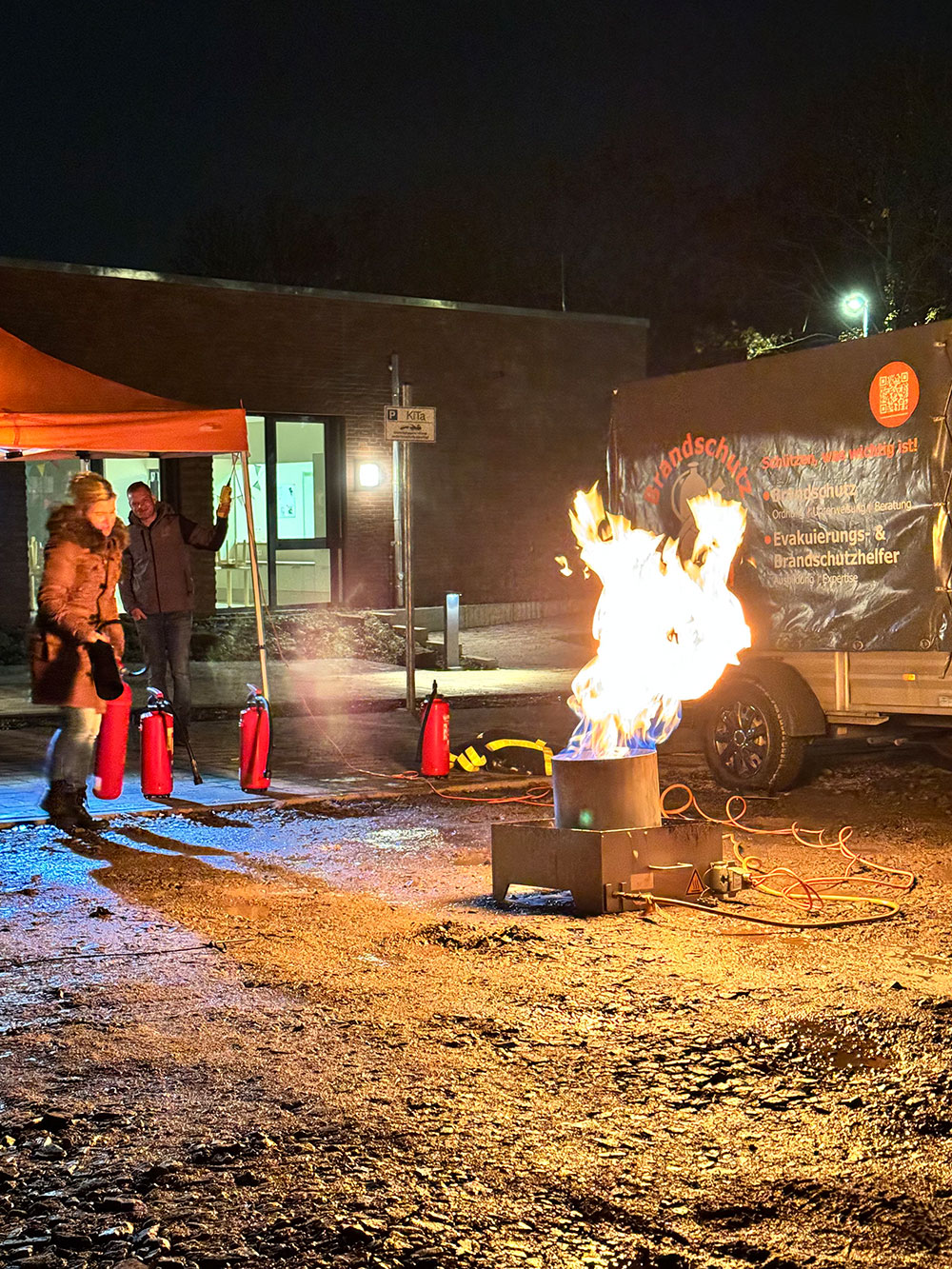 Unsere Brandschutzschulungen vermitteln nicht nur die notwendigen theoretischen Grundlagen, sondern legen besonderen Wert auf praxisnahe Übungen. In lockerer Atmosphäre schaffen wir Raum für individuelle Fragen und den offenen Austausch. Ob Feuerlöschertraining am Simulator oder wichtige Verhaltensregeln im Ernstfall – wir bereiten Ihre Mitarbeitenden umfassend und verständlich auf den Notfall vor. Ziel ist es, Sicherheit greifbar und nachhaltig zu machen.