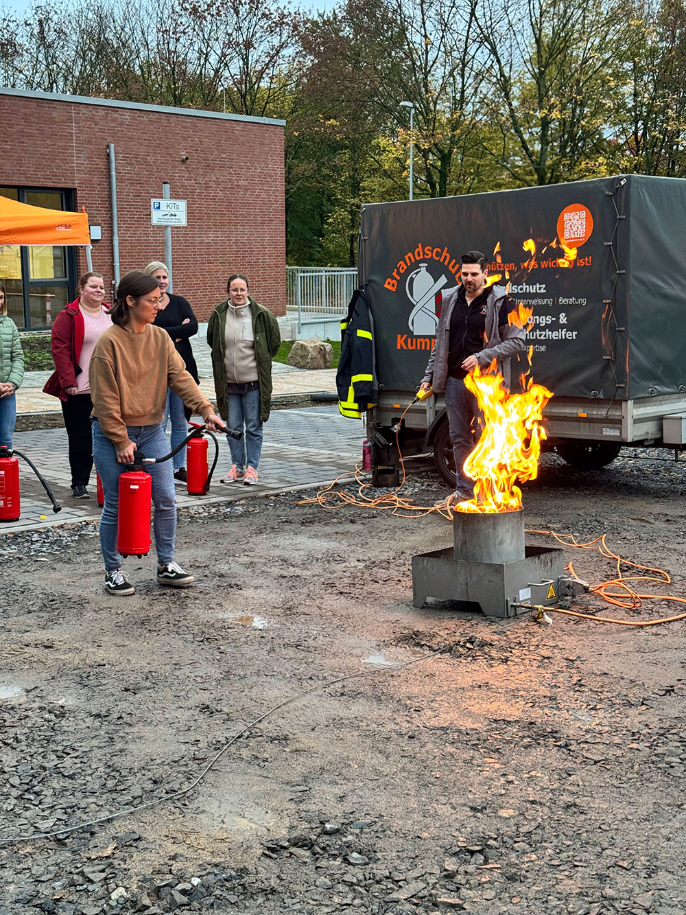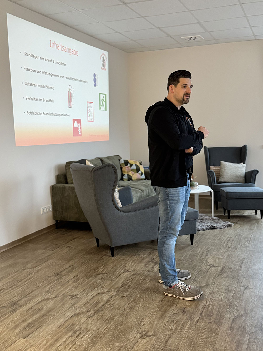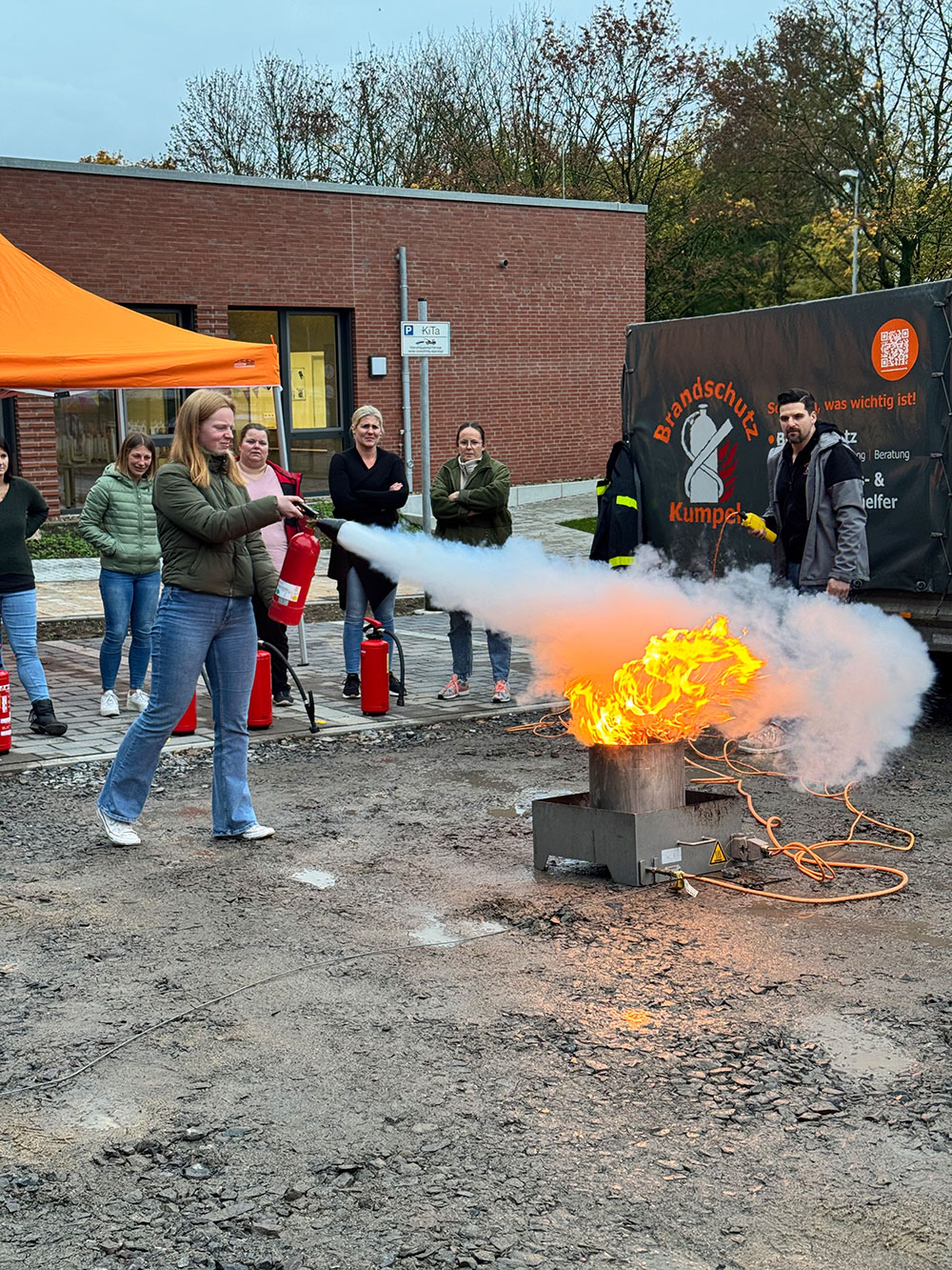 Unsere Brandschutzschulungen vermitteln nicht nur die notwendigen theoretischen Grundlagen, sondern legen besonderen Wert auf praxisnahe Übungen. In lockerer Atmosphäre schaffen wir Raum für individuelle Fragen und den offenen Austausch. Ob Feuerlöschertraining am Simulator oder wichtige Verhaltensregeln im Ernstfall – wir bereiten Ihre Mitarbeitenden umfassend und verständlich auf den Notfall vor. Ziel ist es, Sicherheit greifbar und nachhaltig zu machen.
